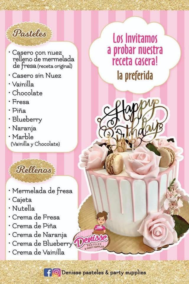 - Háganos saber el tipo de pastel (sabor, diseño y cualquier otra instrucción especial)